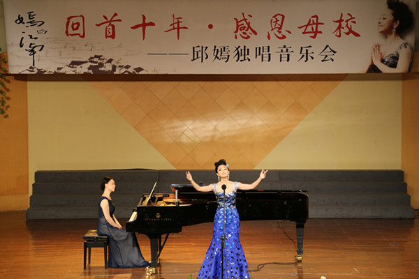 邱嫣是我院2001级音乐表演班学生,师从我院国家一级演员、音乐系教师赵俊,在校期间,曾多次代表学院参加外事演出,在各类演出活动中担任独唱节目,曾代表学院参加“全国高等艺术院校民族声乐大赛”荣获演唱奖,参加第十二届CCTV全国歌手电视大奖赛获浙江赛区民族唱法组铜奖。2005年,她在校举办毕业独唱音乐会,是五年一贯制学生中第一个举办毕业独唱音乐会的学生,获得广泛好评,被评为院优秀毕业生。她于2006年考入中国音乐学院音乐表演专业,师从宋阿娜老师。毕业后考入中国人民解放军海军军乐团担任独唱演员。她的简历刊登在中国音协出版的第九期《歌曲》杂志上,其演唱的《新西湖恋歌》收录在金奇音乐作品集《南方雨》专辑中。2013年她再度考入中国音乐学院继续研究生课程学习,师从著名声乐教育家邹文琴教授。在海军军乐团,她圆满完成几十个来华访问的外国高级军事代表团演出保障任务,曾先后赴浙江、福建、广东等省慰问演出,并出访俄罗斯、朝鲜,出色完成演出任务,因工作突出荣立三等功,成为一名受观众喜爱的军中百灵。