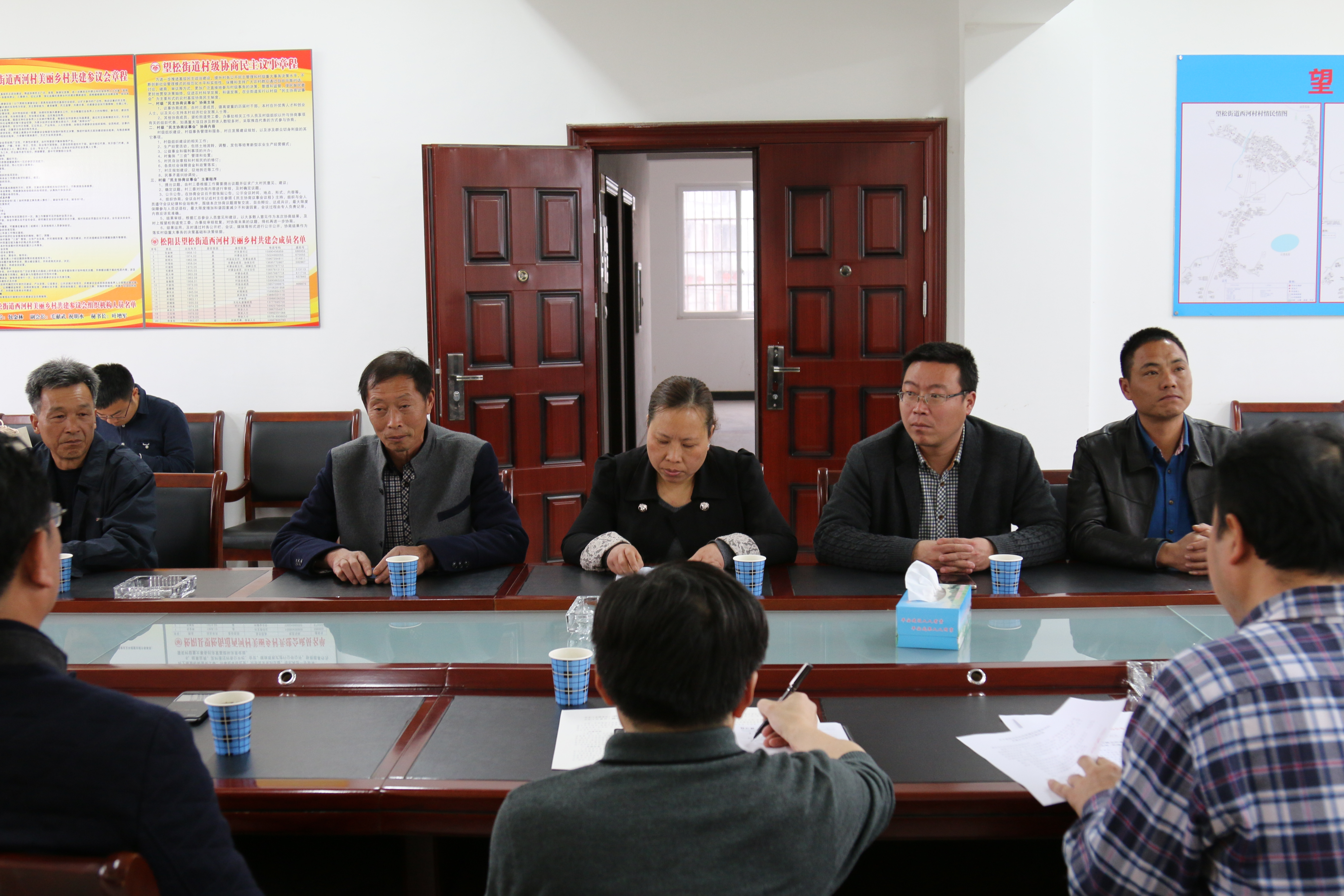 调研组一行在街道和村委领导陪同下,参观了西河村党员活动室、文化礼堂、西河讲堂、公共服务窗口以及特色长廊、艺术长廊和村史长廊。该村是浙江省文化厅评定的文化示范村,参观中,调研组成员对西河村在精神文明建设方面取得的成果表示赞赏,期待加强与该村在文明建设上的合作。