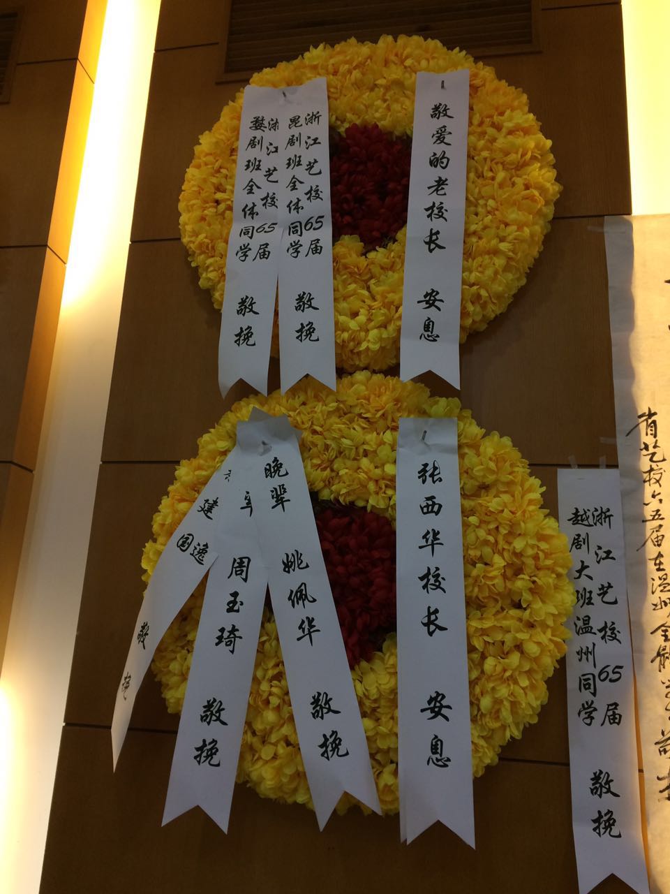 张西华是浙艺主要创建者之一,老校长的离开,多少浙艺人为之不舍、悲痛。“校长仙逝,音同存,容犹在,句句教诲刻骨铭心;学子泣拜,承师育,沐仁爱,点点恩泽受益终身”“治校有方,洒九天雨露,满园桃李竞相妍,幸千秋业绩得长存;功德无量,领百年风骚,两袖清风上天台,盼师生来世续前缘”……在告别仪式现场,浙艺人的一幅幅挽联,字里行间都是对张西华老校长的怀念和告白。