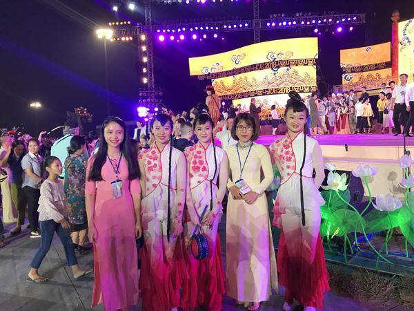人民网越南顺化4月28日电 (记者 刘刚)当地时间4月27日晚,第十届越南顺化艺术节开幕式晚会在顺化皇宫举行。中国艺术团表演的舞蹈《花鼓声响花开处》惊艳亮相,赢得喝彩。