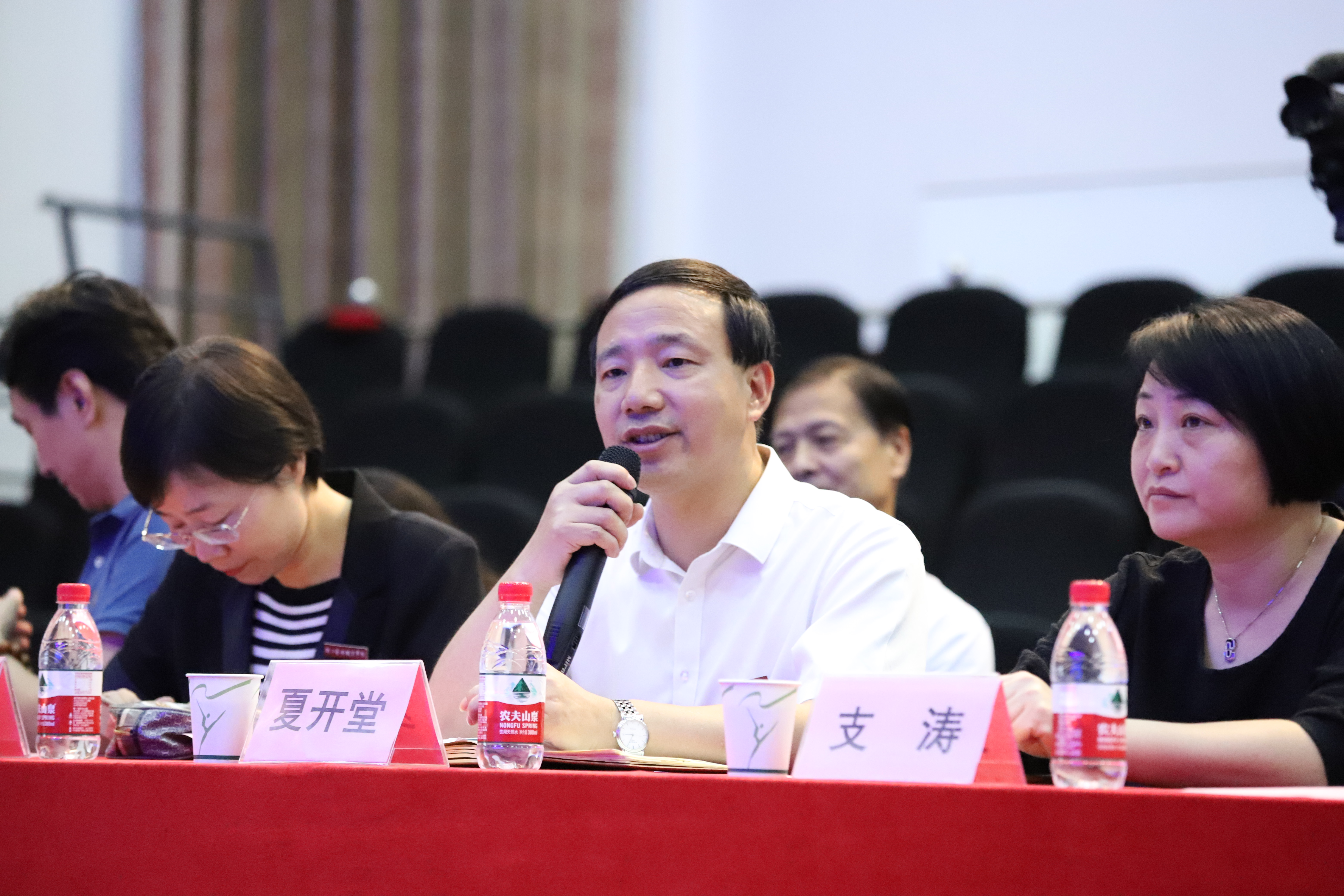夏开堂在开班仪式上代表浙艺致辞。他告诉同学们,省教育厅、省文化厅高度重视戏曲人才培养,对越剧专业中本一体化班寄以厚望。作为两校共同打造的首届学生,同学们既很优秀,也很幸运。他提出了四点希望:一是学戏先学做人,铭记戏比天大,向盖叫天、周传瑛、姚水娟等老艺术家学习,对自己有更高的要求;二要坚定自己的职业选择,选择了越剧表演,就是选择了这个职业,就要把传承发扬越剧艺术的责任担起来;三是勇敢面对困难和挑战,戏曲学习非常艰苦,遇到了困难一定要坚持住,不能轻易放弃自己的艺术生涯;四是注重全面发展,学好专业基础也要学好文化知识,未来为文化浙江建设贡献自己的力量,为戏剧梨园增光添彩。