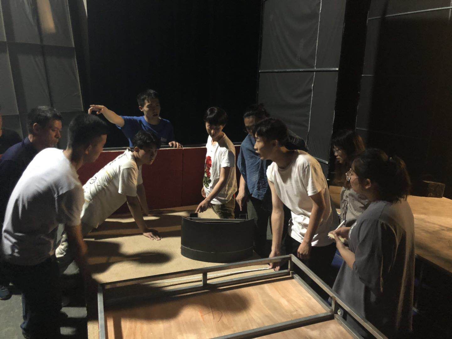 制景阶段,同学们大部分的课外时间都在剧场工作室度过,导演提出修改意见尽量在没进场前先处理。