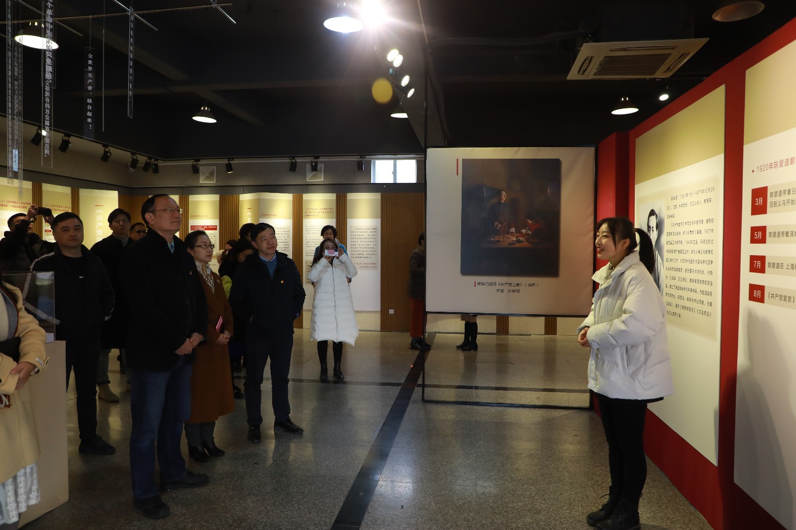 12月16日,“百年望道”——纪念《共产党宣言》中文首译本出版100周年主题展开幕,院长黄杭娟、校党委副书记夏开堂出席,各职能部门负责人、各院系书记和美术系师生代表参加。开幕式由夏开堂主持。