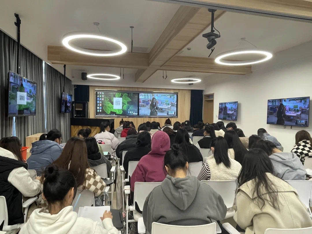 面对画面中实时直播的教学见习,学前教育专业同学们感到既有趣又好奇,积极提出自己的问题,与园方老师进行实时沟通,大家觉得受益匪浅,对学前教育专业有了进一步的理解与体会。