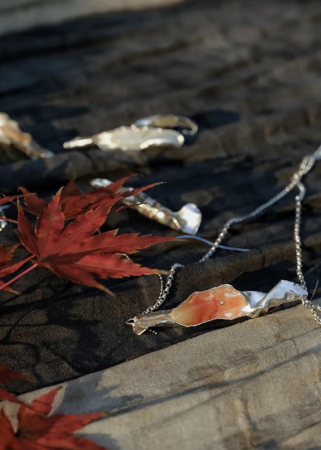 简介:“夜来风叶已鸣廊,看取眉头鬓上。”叶,是不会飞翔的小鸟。叶片做为生活中最常见的事物,往往被人们所忽略,但是宋代的文人们往往借叶子抒发自己的情感。这一套首饰整体呈现一片叶子的形态,中间夹杂不同种类和形状的石头,表达每一片叶子都能带来新的希望,就好像鸟儿把自由带给人们,叶子经过四季变化把对根的情意报答给土壤。