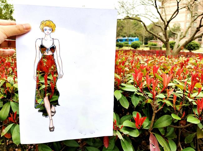 当服装设计图遇上花海