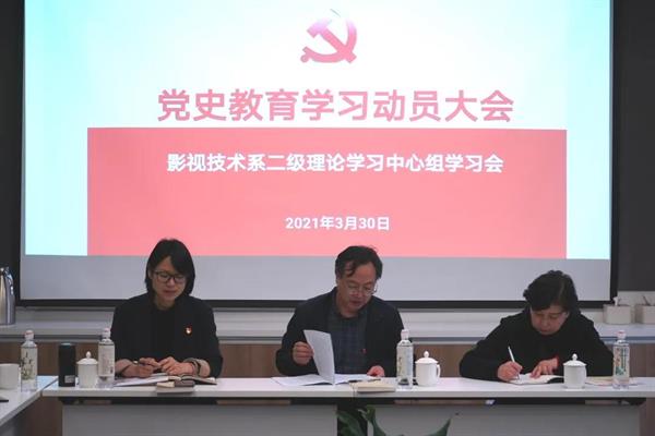 系党总支书记彭云波在会上强调,全系师生党员要深入学习贯彻中央和全省党史学习教育动员大会精神,把开展党史学习教育作为一项重大政治任务,切实贯彻上级党组织和学校党委的部署要求,不断增强开展党史学习教育的思想自觉行动自觉。2021年是中国共产党成立100周年,我们党的历史是与人民同呼吸、共命运的历史,我们党员教师要把学习百年党史与学习党在浙江百年奋斗历史相结合,要把学习百年党史与扎根教学立德树人相结合,不断提升影视职业教育质量,为学校事业高水平建设助力。
