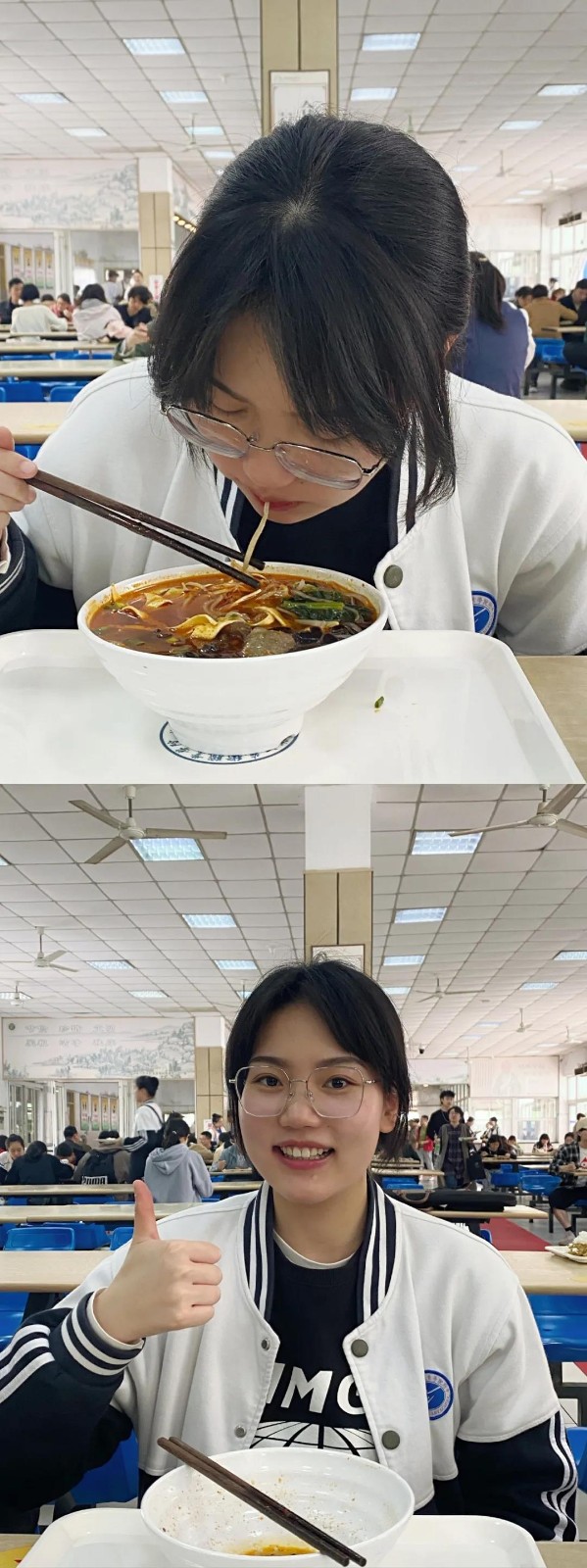 2019民乐班学生陈哲文说,作为一个合格的“干饭人,当然得吃光盘中每一粒饭,喝完盘中的最后一口汤后,整整齐齐地把餐盘放好,这才是光盘行动的精髓。