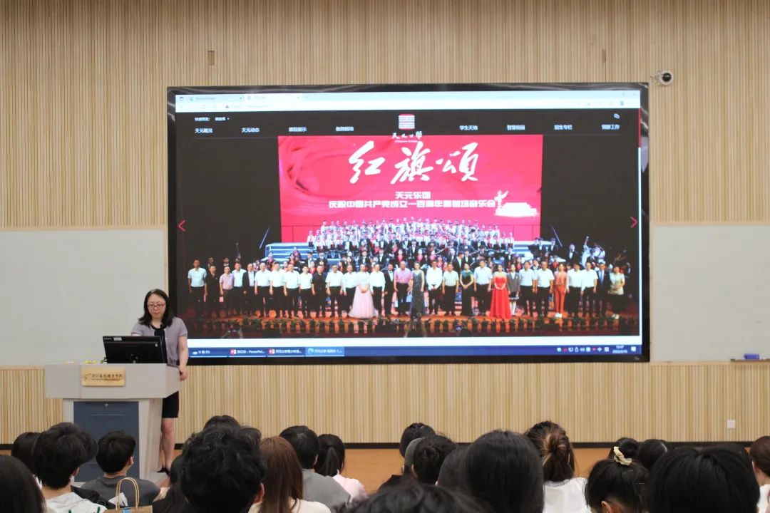 党总支专职副书记钟黎对天元公学(余杭区未来科技城)青少年活动中心的到来表示热烈欢迎,她提到,天元公学(余杭区未来科技城)青少年活动中心为青少年提供艺术类教育,这与我院“一专多能综合型文化人才”的人才培养目标契合度高,她鼓励在场学子积极参与实践,为今后的就业增加选择。
