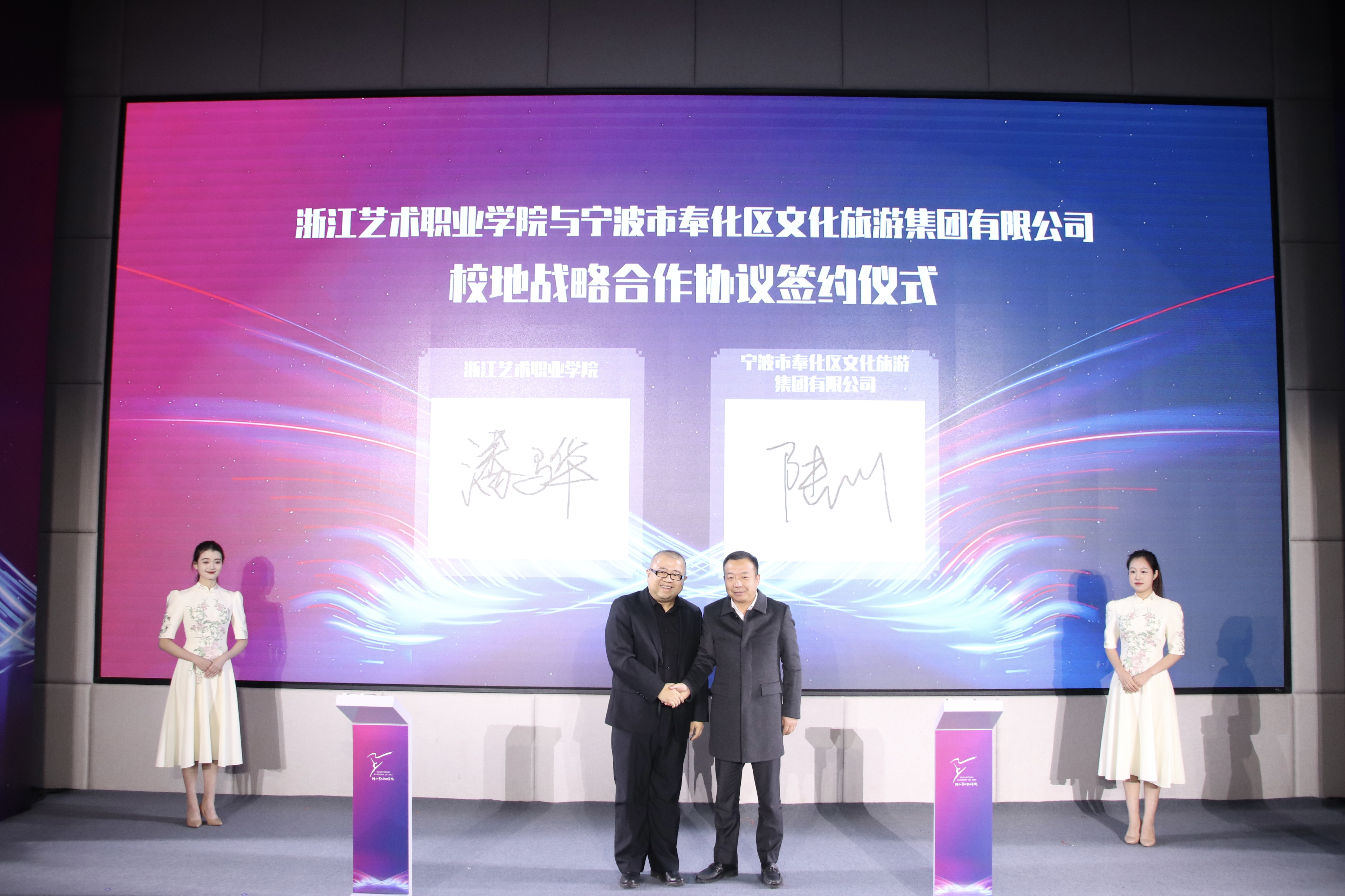 “随着产教融合、校企合作的逐步深化,产业学院已经成为产教融合、校企合作培养人才的重要组织形式,也是学校提升人才培养质量的重要途径,更是学校促进人才培养供给侧与产业需求侧结构因素全方位融合的必由之路。”浙艺党委书记薛亮表示,学校与杭州新青年歌舞团股份有限公司共建文化共富产业学院,希望能够打造融人才培养、科学研究、技术创新、企业服务、学生创业等功能于一体的示范性培养实体,为文化艺术人才培养提供可复制、可推广的新模式,切实增强人才对文化高质量发展的适应性。