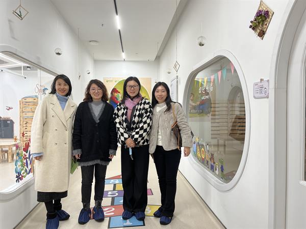 在园长张蕾的带领下,我院一行参观了托育教室。新浦托育园现在有星空班、沙滩班、海滩班三个班级,利用周末还为家长开设了婴幼儿成长驿站。张蕾表示,演教学院学前教育专业培养的专业人才和园所的人才需求匹配度高,期待未来能在亲子公益课堂、师资储备、实习就业方面有更深入的合作。
