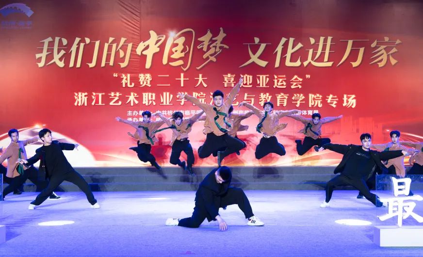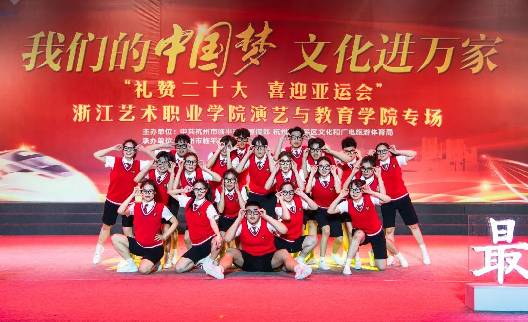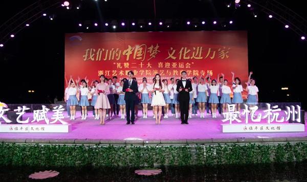 集体舞《等你来》是亚运会志愿者主题曲,表达了艺术学子为亚运会贡献一份青春力量的心愿。演出现场高潮迭起、喝彩不断,同学们以精彩表现赢得了观众们的赞扬与认可。