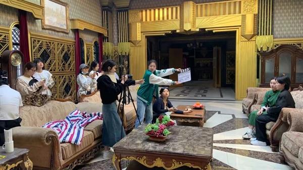 4月28日中午,同学们抵达象山影视城后便立即进行堪景,并分成三个小组进行剧本围读。次日,大家前往各组选定的拍摄场地,亲自布置场地、架设机器等。五一期间,象山影视城人流量大、天气多变,但同学们都克服了困难,时刻保持影视作品创作的状态,顺利完成4部短片和1部纪录片的创作。