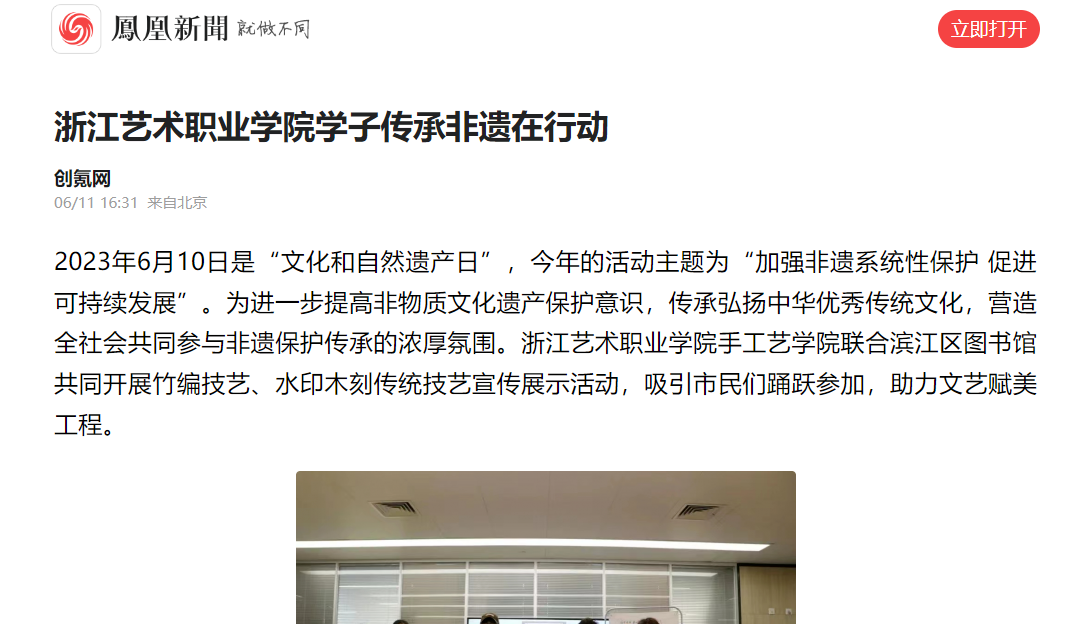 手工艺学院在2023年“文化和自然遗产日”前后,组织开展丰富多彩的手工艺展览展示、活态体验活动。举办第五届“浙艺手艺”节校园文化活动,以“巧艺传承 匠心筑梦”为主题,融专业教育、专业创作、社会实践、乡村振兴于一体,深入推进传统技艺走出校园,走进中小学、社区、图书馆、博物馆、乡村,集中开展活字印刷、古籍装帧、水印木刻、传统印染、竹编、剪纸、陶艺等传统技艺宣传、展示、活态体验,助力共同富裕示范区建设,让群众在家门口就能接触非遗技艺、学习非遗技艺、传承非遗技艺,体验非遗魅力。“宋韵•拾遗”2023届毕业生作品展涵盖书画装裱、古籍修复、古陶瓷修复、青瓷烧造、传统印染、水印木刻、石雕篆刻、刺绣编织等手工艺作品。本届毕业生作品展共展出文物修复与保护、民族传统技艺、文化创意与策划、展示艺术设计四个专业学生的优秀艺术实践成果。“艺海撷英”手工艺邀请展第六期——“‘一木一刻凝匠心’东源村的木活字之路”展示国家级非遗项目——木活字印刷技艺的历史源流和现代创新。木活字印刷术省级代表性传承人王钏巧现场为观众展示木活字技艺,介绍木活字印刷术的文化艺术内涵和历史人文价值,呼吁共同守护世界印刷术的“活化石”。手工艺学院将不断推动非遗创造性转化、创新性发展,融入现代生活,不断扩大“浙艺手艺”的影响力。
