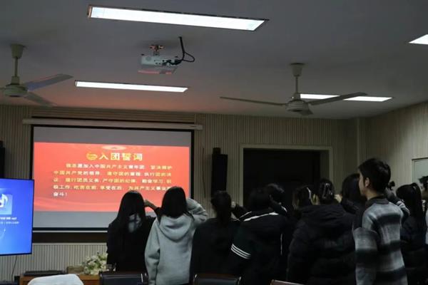 为壮大中国共产主义青年团的鲜活力量,深化团的自身建设,切实培养团员的光荣感和使命感,增强团员的进取意识,为团组织注入新的活力,戏剧影视学院团总支于1月18日在4210会议室举行2023年下半年新团员入团仪式。戏剧影视学院学工主管颉顺虎、团总支副书记侯明妍出席,新、老团员代表参加。本次活动由团总支书记周鑫妍主持。