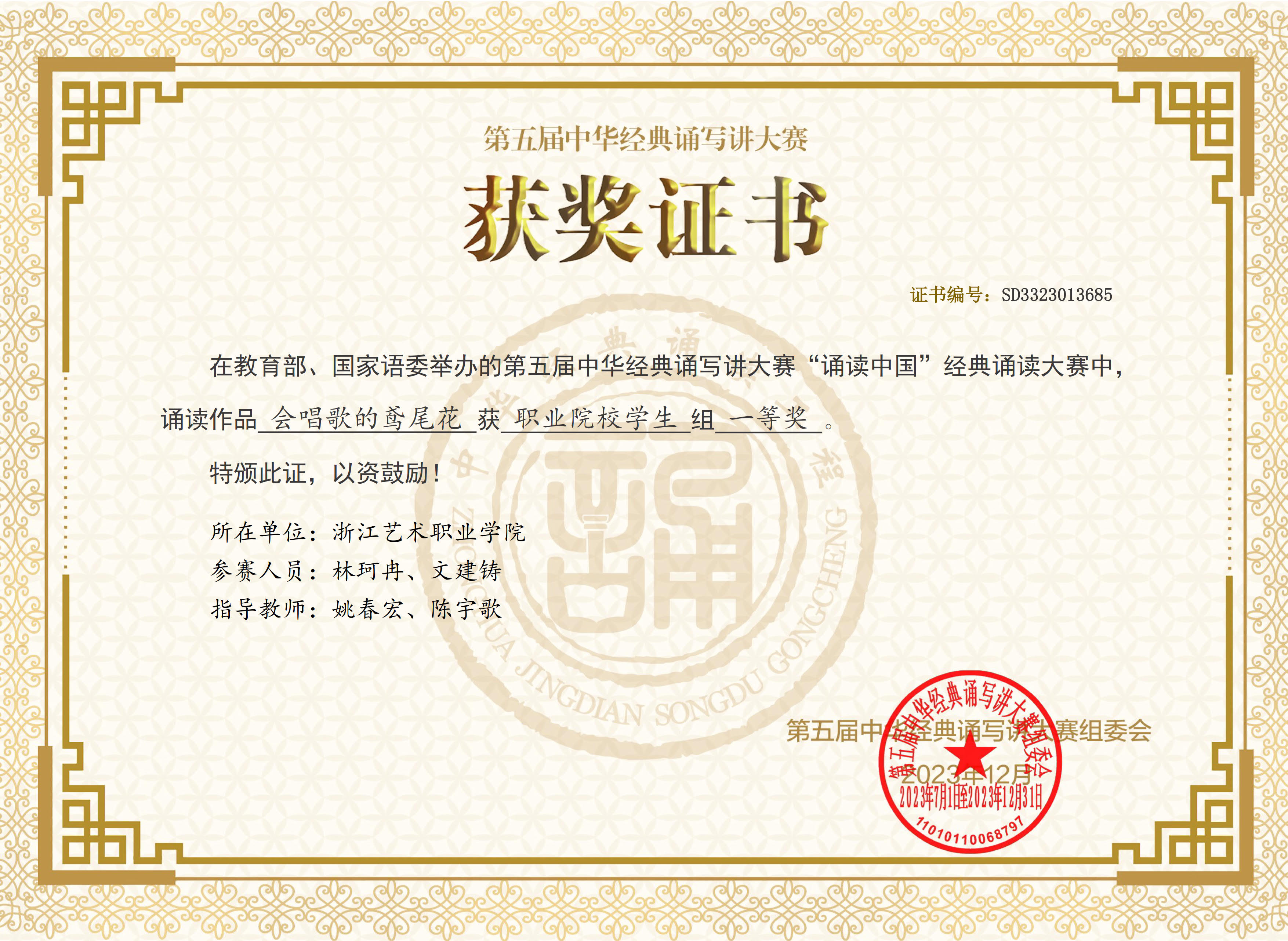 全国一等奖!浙艺师生在第五届中华经典诵写讲大赛中再创佳绩