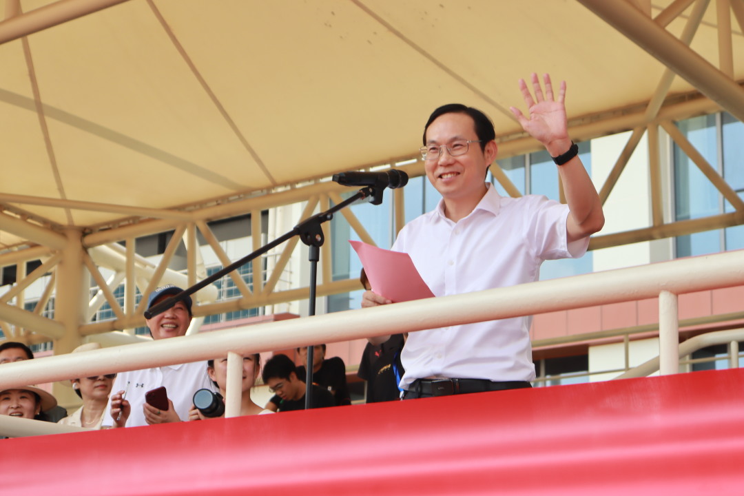 本届运动会不仅是一场逐梦赛场的体育赛事,更是一场献礼校庆的青春盛会。我们不仅比拼速度与力量,更要传承坚韧与拼搏的精神。希望所有人都能把赛场上的拼搏精神延续到学习、工作与生活中,树立终身锻炼的意识,以健康的体魄、饱满的热情、奋进的姿态,为学校高质量发展贡献新的力量,为庆祝建校七十周年再添新的光彩。