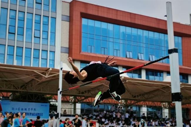 跳远赛场上的欢呼声此起彼伏为选手加油打气